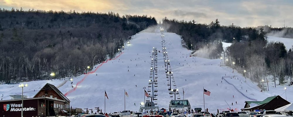 *West Mountain, known for its intermediate family-friendly skiing and enchanting night skiing under the lights. Food and live music.