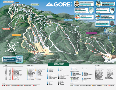 *Gore Mountain, the largest mountain for all levels, ideal for families and boasting a variety of trails. Fun bar and food available. Live music.